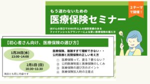 【2026年1月28日・2月1日開催】初心者さん向け 医療保険の選び方セミナー