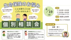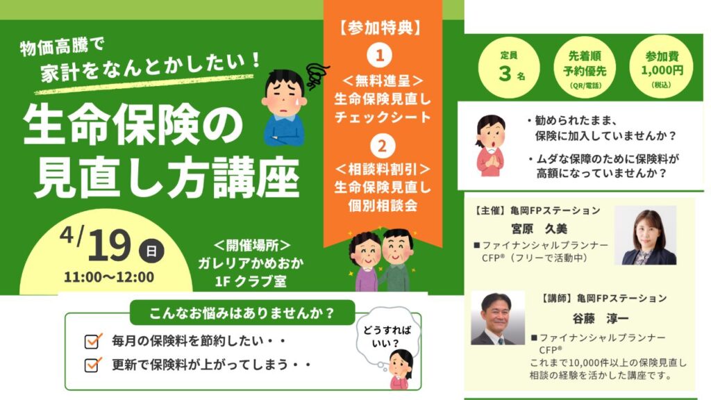 【開催予定:2026年4/19】生命保険の見直し方講座(見直しチェックシートプレゼント!)