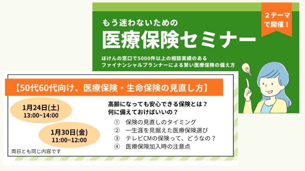【2026年1月24日・30日開催】50代・60代向け 医療保険・生命保険の見直し方