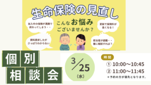 【開催予定:2026年 3/25(ガレリアかめおか)】生命保険の見直し個別相談会
