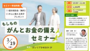 【開催予定:2026年 3/19(ガレリアかめおか)】がんとお金の備えセミナー|治療費・先進医療・がん保険の考え方
